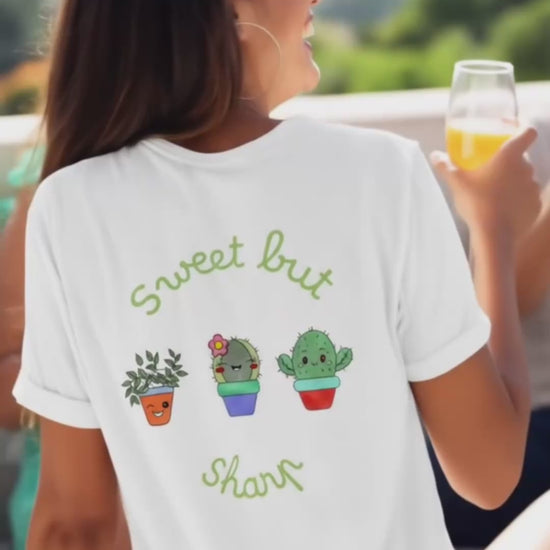 Ce t-shirt unisexe “Sweet but Sharp” met en avant un design original et fun : trois petits cactus adorables, accompagnés d’un message plein d’humour. Avec son illustration colorée et son style décontracté, il est idéal pour ceux qui veulent exprimer leur personnalité avec légèreté et originalité.